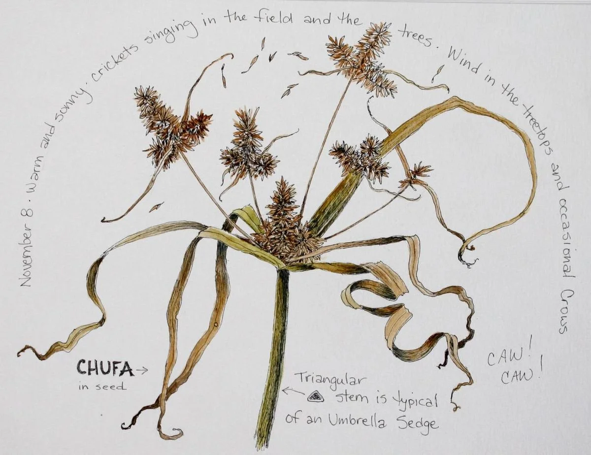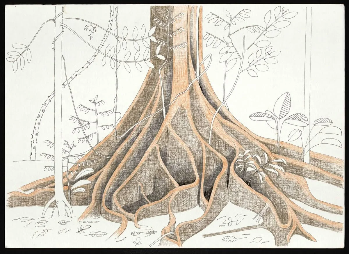 They make a quick mini sketch of what they see — just the lines, textures, and shapes.